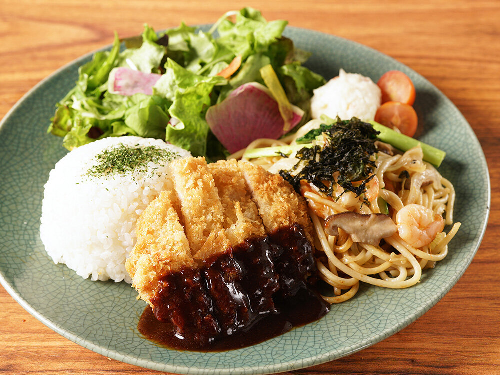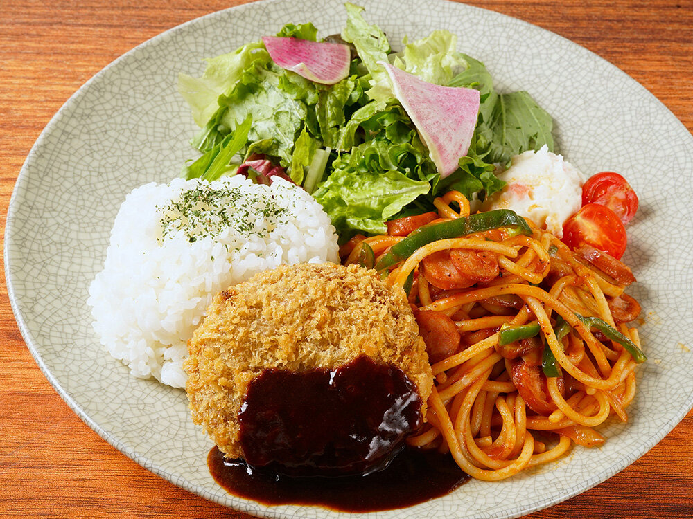 炒めスパゲティ&白老和牛メンチカツプレート 1,848円