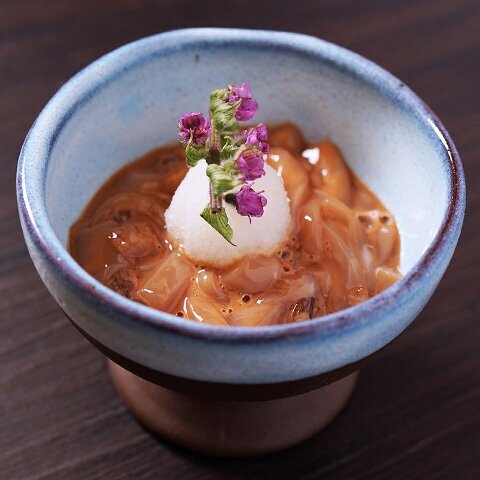 先付 ふぐ皮煮こごり 春菊白和え