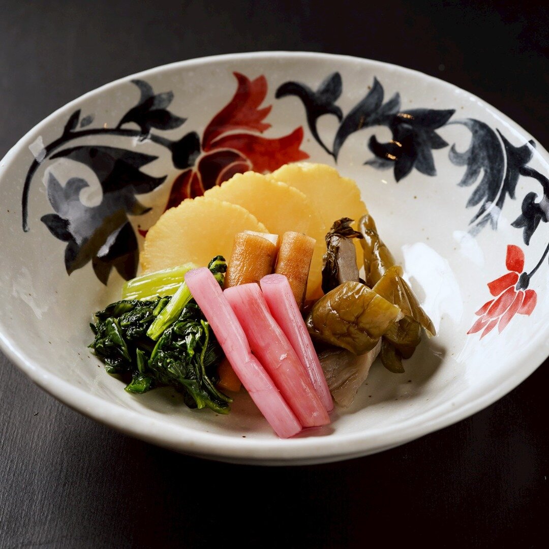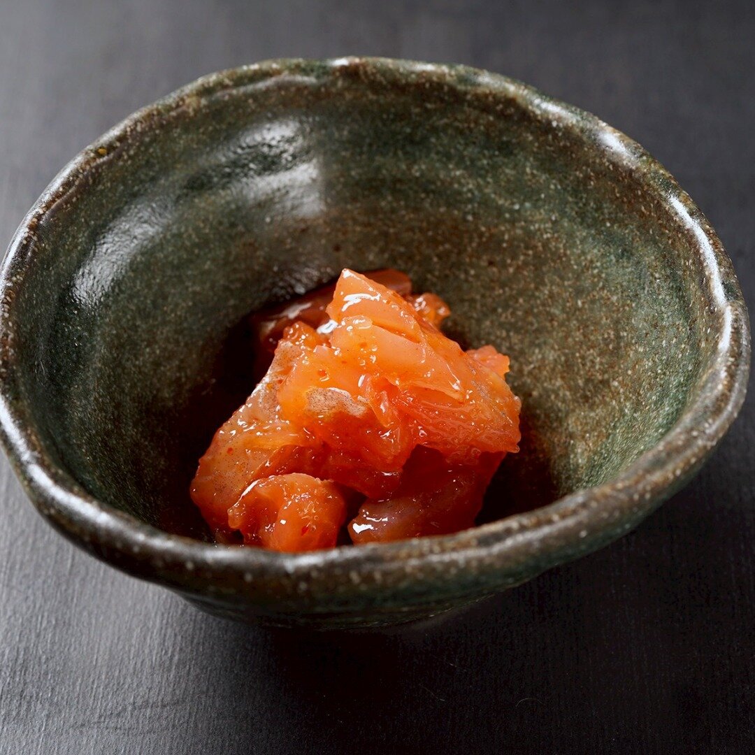 先付 帆立ヒモ塩辛・紅鮭糀漬け