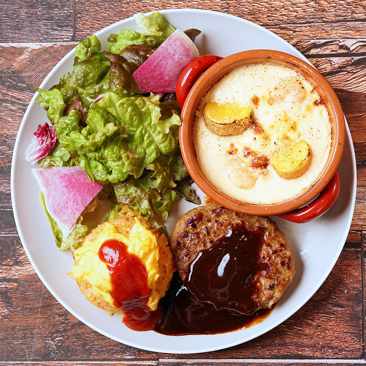 セットメニュー チキンライス&ハンバーグ E-2 1,353円